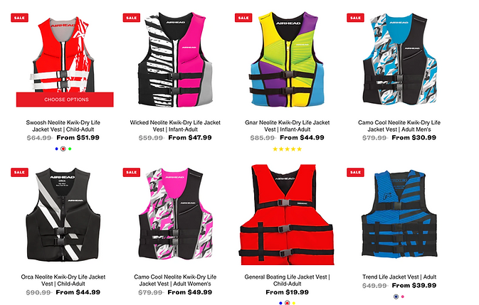 Apparel, footwear, games, floats, snowshoes, towables, baby goods, and accessories
